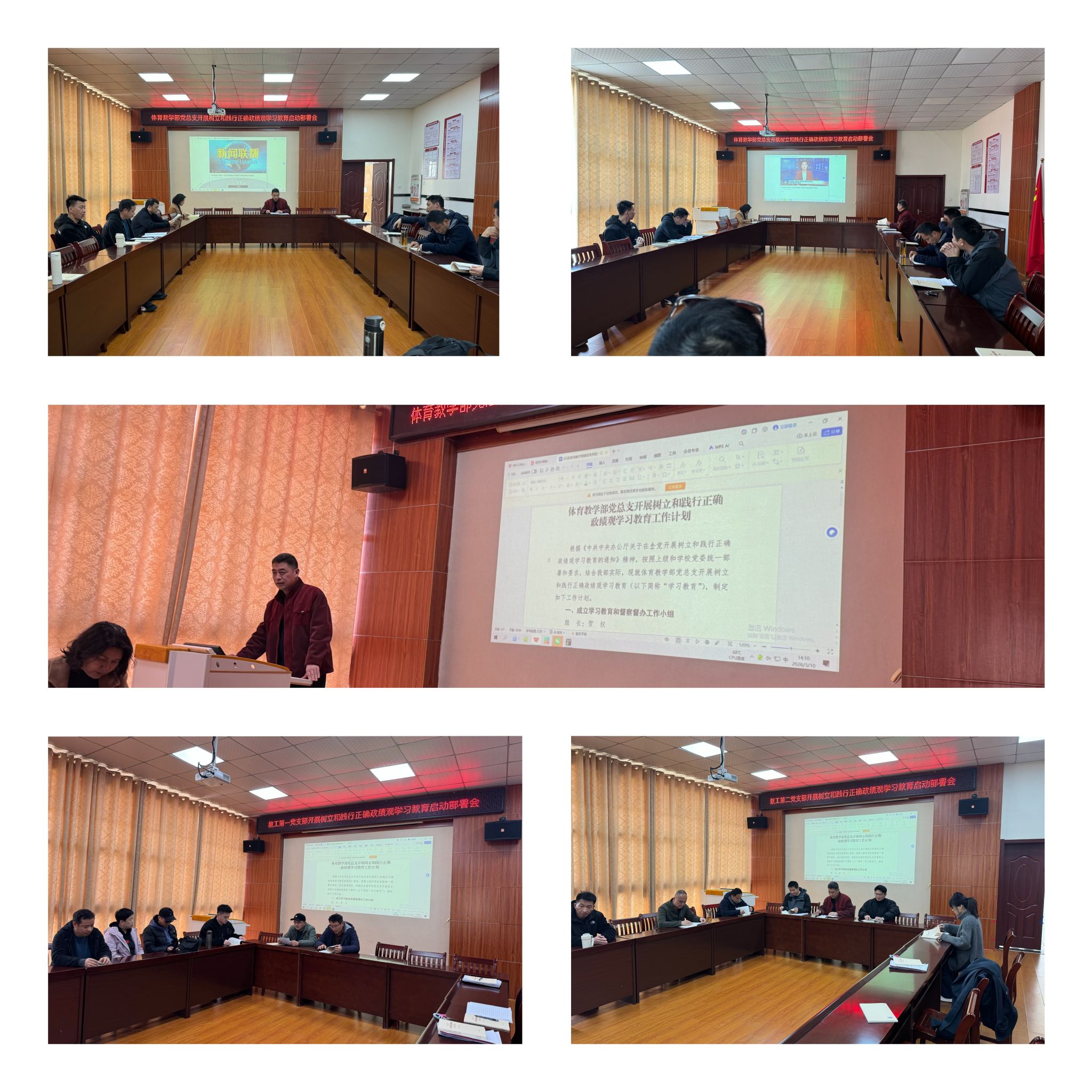 3月10日,体育教学部党总支召开党员大会暨开展树立和践行正确政绩观学习教育部署会,传达学习校党委党建工作领导小组会议精神,对部门开展树立和践行正确政绩观学习教育进行动员部署。